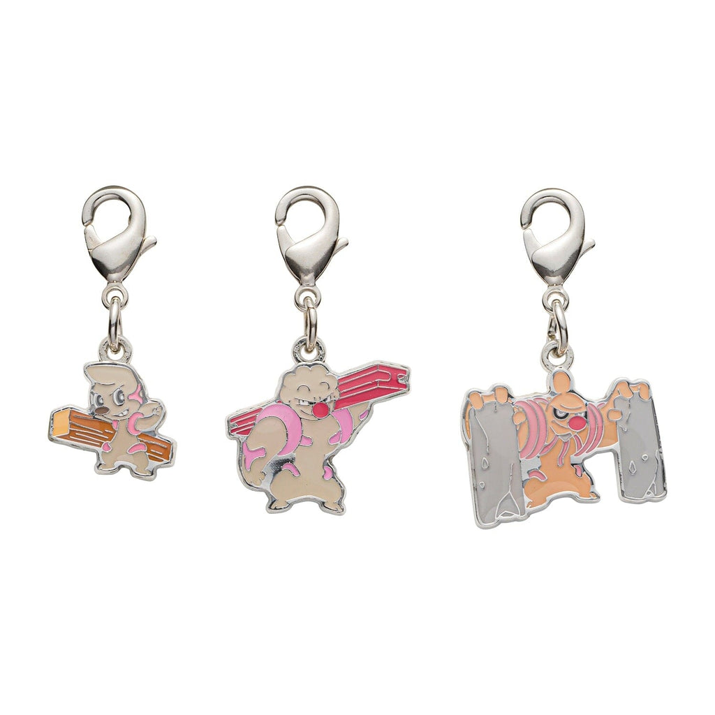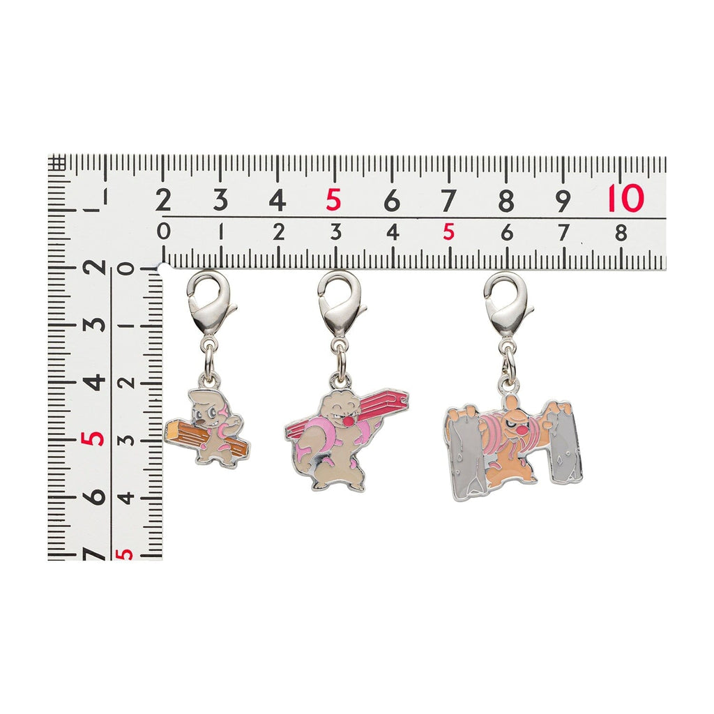 This is an authentic Timburr, Gurdurr, Conkeldurr - National Pokédex Metal Charm Keychain #532, #533, #534 from Pokémon Center in Japan.