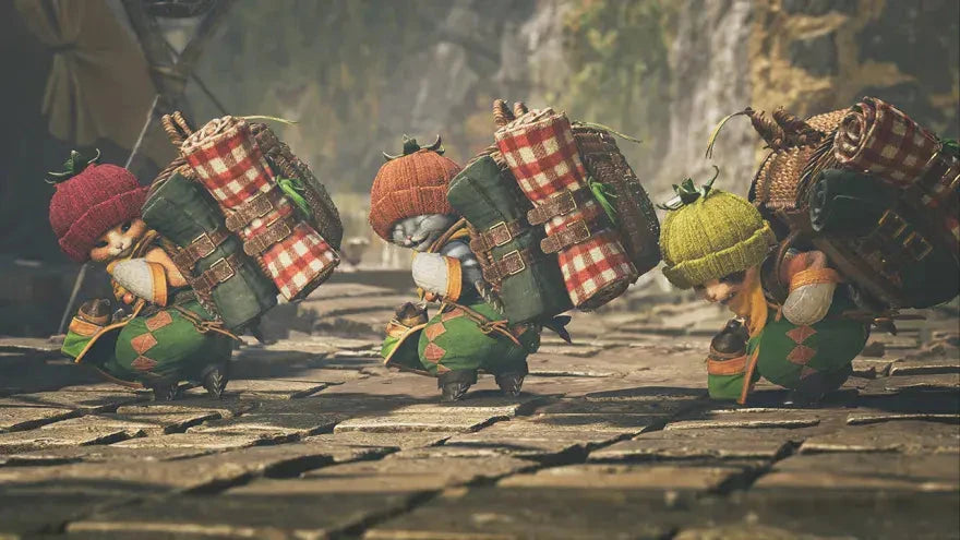 This is an authentic Tom, Toma, Tomo Plush Set - Monster Hunter Wilds from Capcom in Japan.