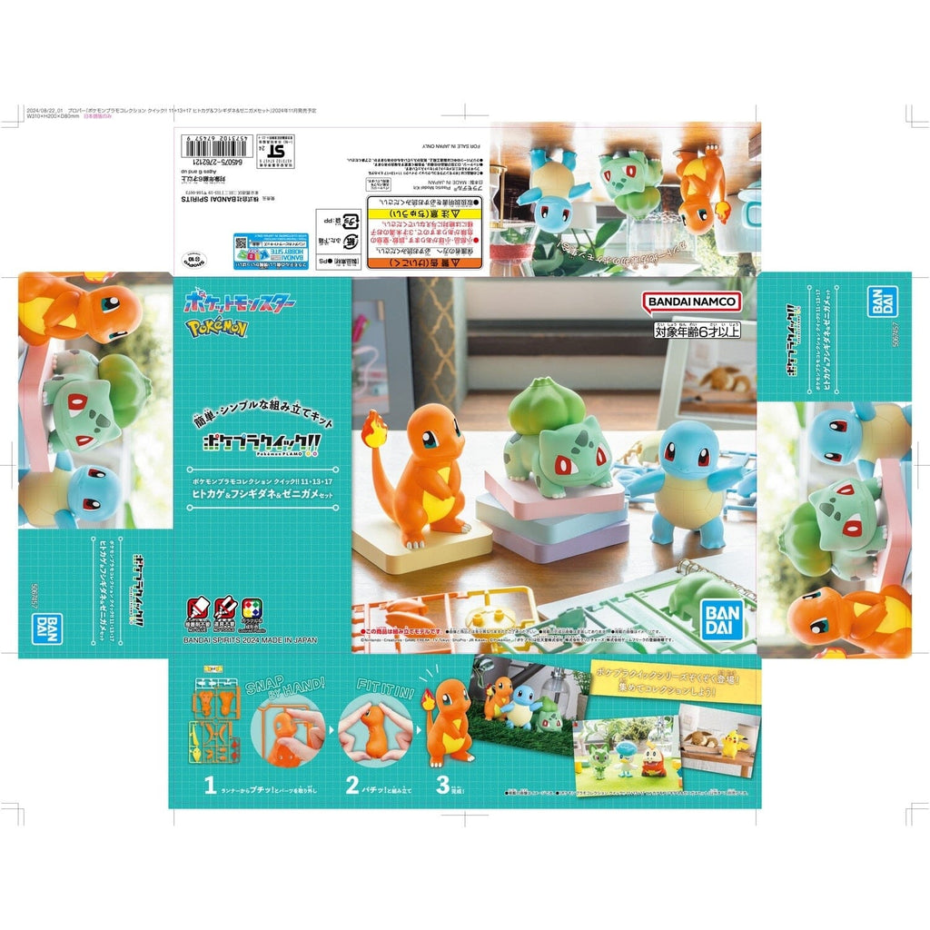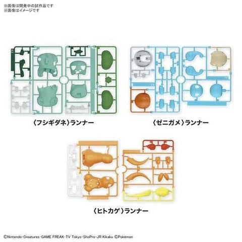 This is an authentic Bulbasaur & Charmander & Squirtle Set Pokémon PLAMO (Plastic Model) Collection Quick!! No.11, 13, 17 from Bandai Namco Model kit in Japan.